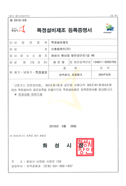 ƯÁ¤¼³ºñÁ¦Á¶ µî·ÏÁõ¸í¼